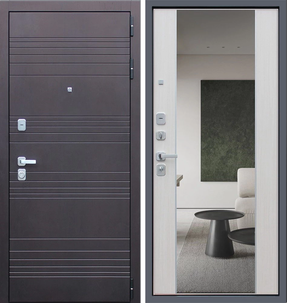 Надежная входная Дверь Дуэт с зеркалом премиум класса по цене 47 081 руб. Большая толщина стали защитит от проникновения в ваш дом, квартиру или коттедж. Используется очень качественная фурнитура: замки, цилиндры, ручки, защелки. Покрытие и отделка двери изготовлено под внимательным контролем производителя. Дверь имеет долгий срок службы и гарантию.